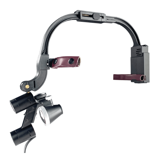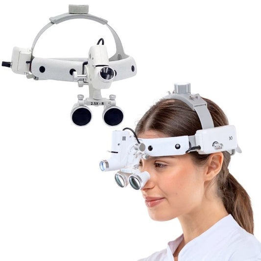 Zahnärztliche X1-Lupe mit Stirnlampe und Metallhalterung