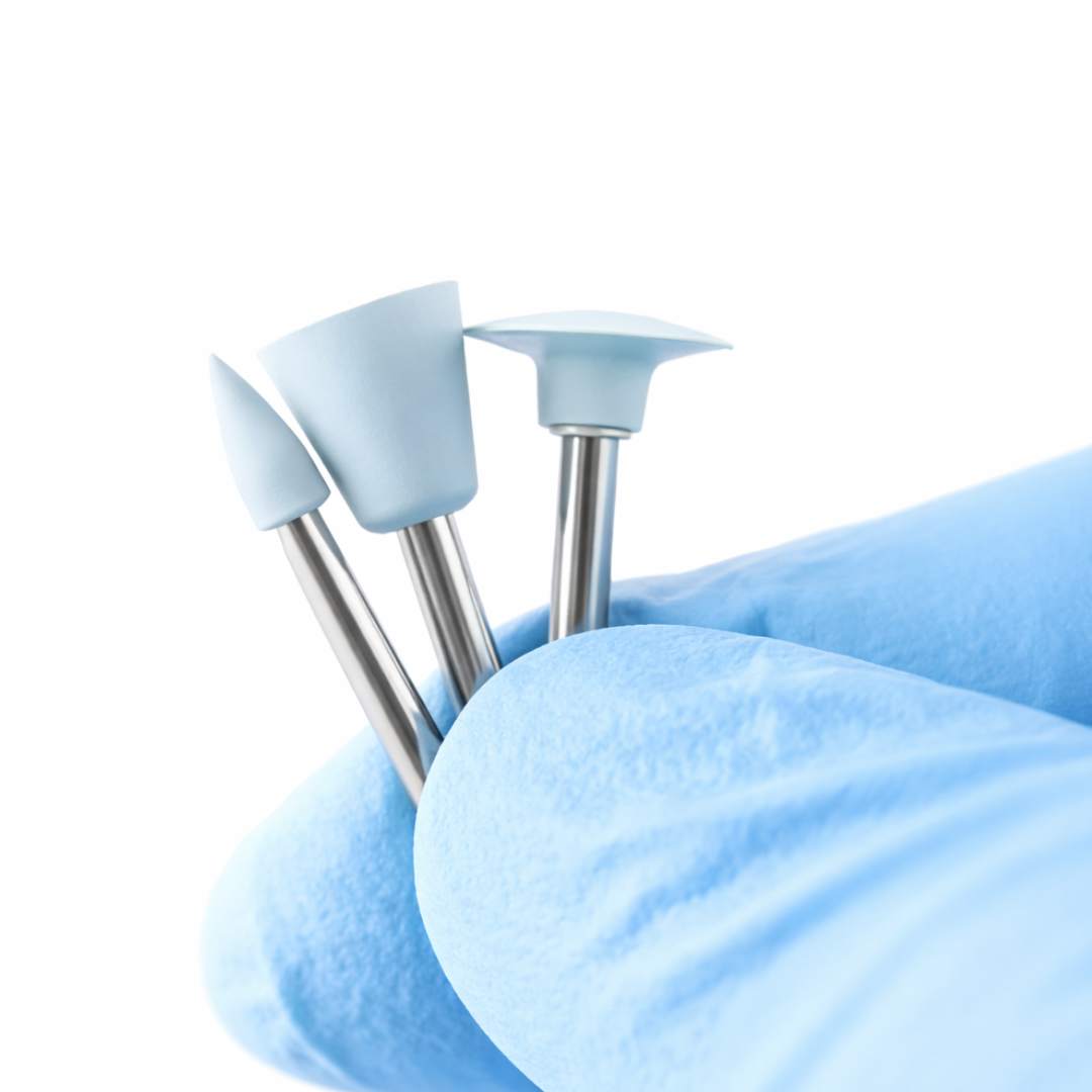 Das Polierset – 14 Teile RA 2,35 mm ist für das Finish und die Politur von Komposit, Kunststoff und Porzellan entwickelt worden und sorgt für eine glatte, gleichmäßige Oberfläche mit hohem klinischem Glanz.