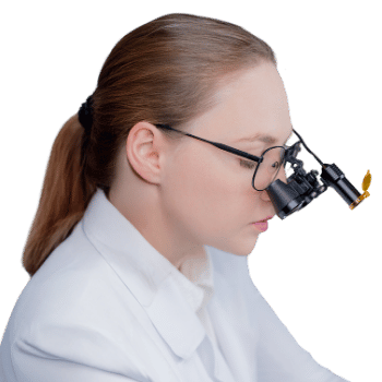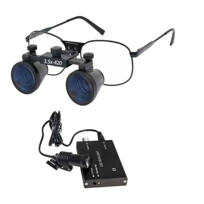 Zahnärztliche X1-Lupe mit Stirnlampe und Metallhalterung